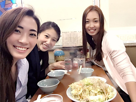 私は、フェンシングの森岡さんと久良知さんとテーブルが同じだったので、3人で並盛のチャーハンと野菜炒め、餃子を分けて食べました。野菜炒めも凄いボリュームだったのですがどれも美味しく、特にチャーハンがとっても美味しかったです