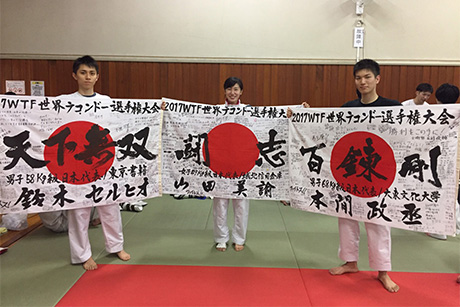 理事長、職員の方々もメッセージを書いてくださっていて本当に本当に嬉しかったですし、皆さんのお言葉にパワーを貰えました。試合の日には会場に国旗を飾って毎試合必ず眺めて気合いを入れて臨みました。